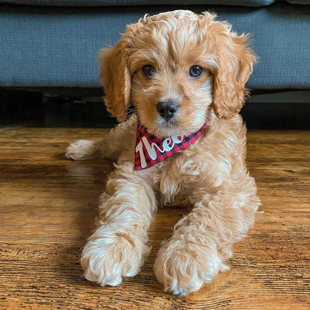 The Cavadoodle is a small dog with a sweet round face, large endearing eyes, a button nose, and large floppy ears. It is undoubtedly one of the most adorable and cuddly small breeds of dog.