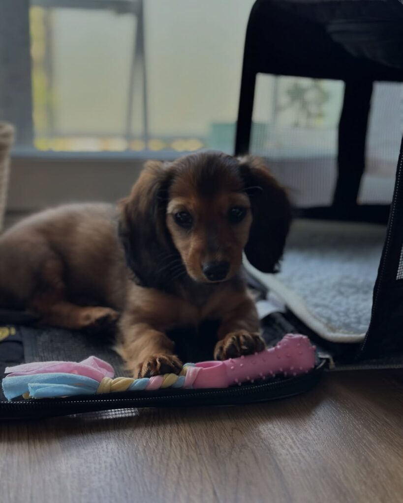 Let me now present to you Papi, a stunning Dachshund with a heart the size of his paws. Papi is a gregarious, compassionate, and affectionate Dachshund dog who enjoys making new acquaintances, particularly by going on enjoyable excursions with the children. The breeder is providing a one-year guarantee on the dog’s genetic health, and the dog has been vaccinated, wormed, and registered with the AKC.